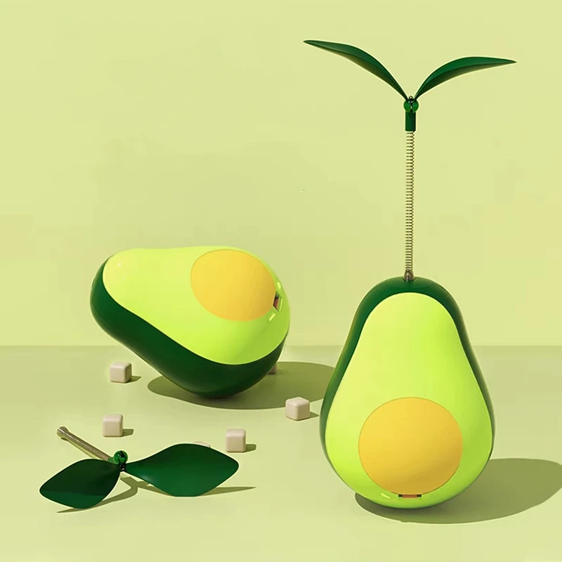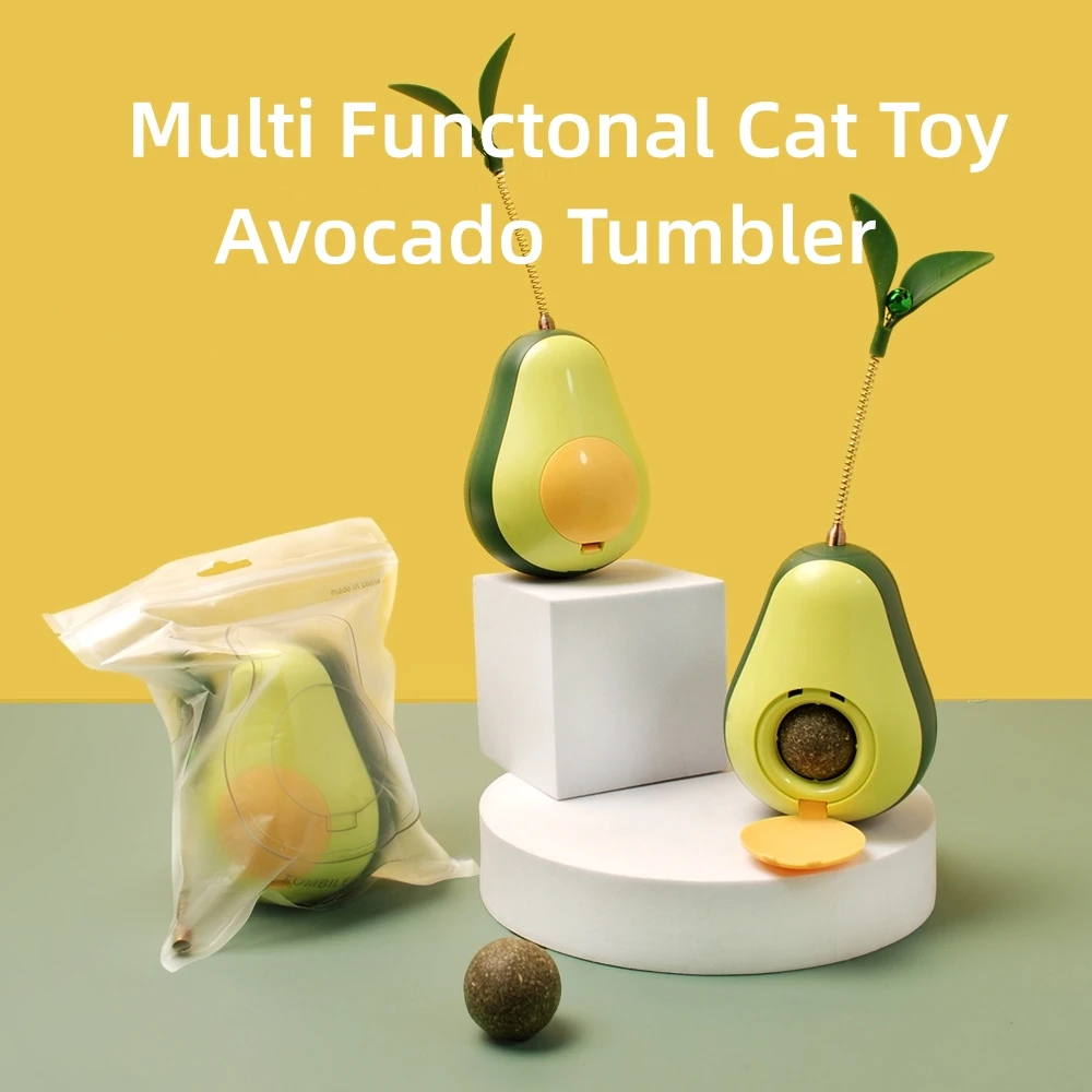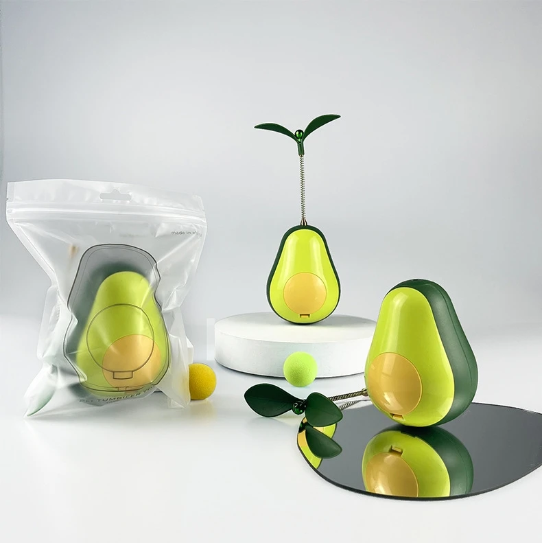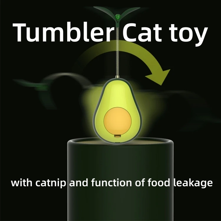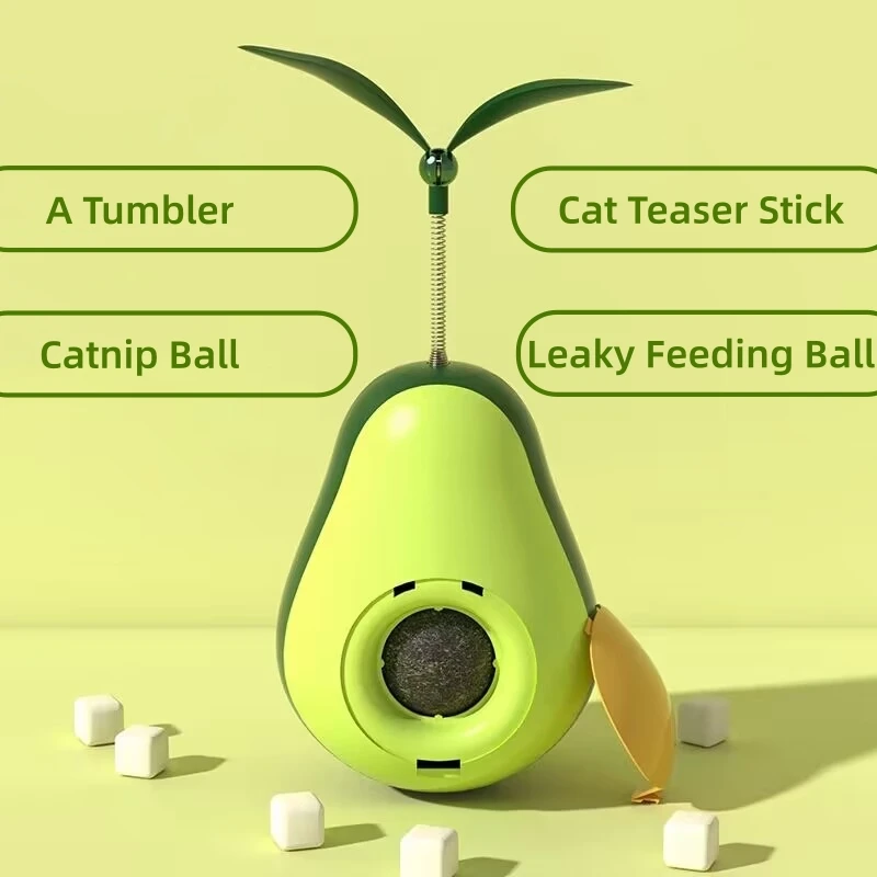 Cats can be very playful and active animals, and they often need toys to keep them occupied and stimulated. Tumbler toys are a type of cat toy that is designed to roll around and make noise, which can be very attractive to cats. Funland Avocado Tumbler Toy integrates catnip ball, leak food toy, and cat teaser toy.It can effectively attract the attention of cats and make them play happily.Funland Relieving Snacks Ball Pet Toys Swing Kitten Catnip Ball Cat Tumbler Treat Toy