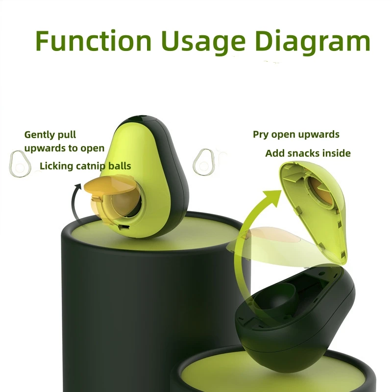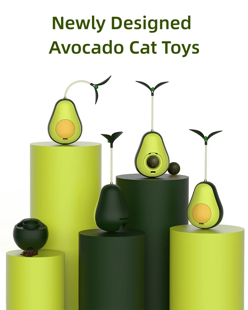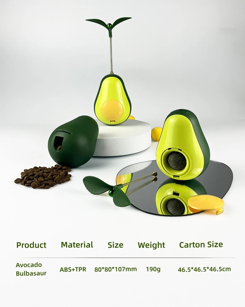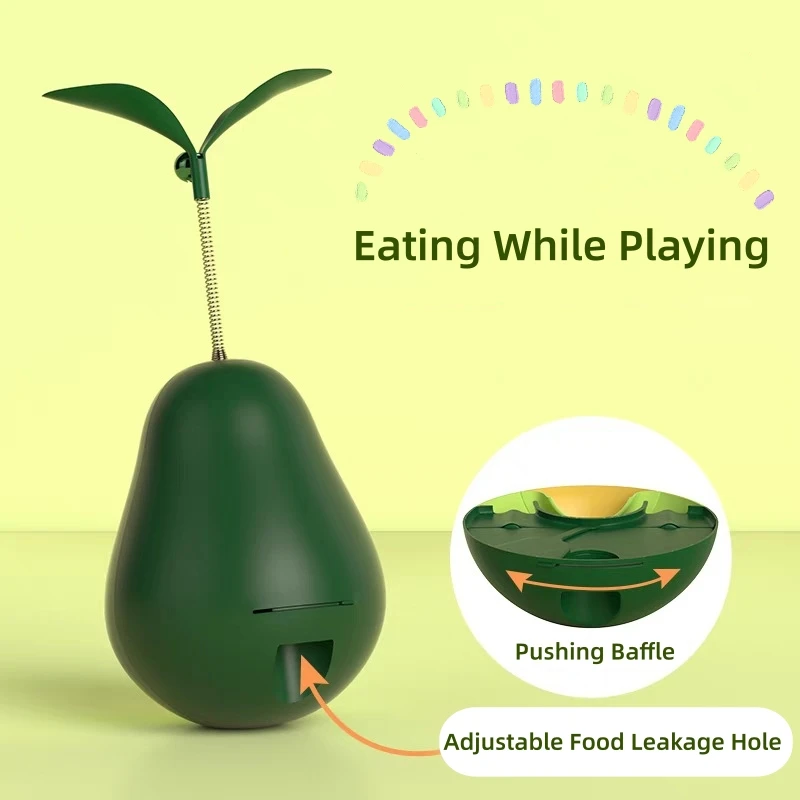 Cats can be very playful and active animals, and they often need toys to keep them occupied and stimulated. Tumbler toys are a type of cat toy that is designed to roll around and make noise, which can be very attractive to cats. Funland Avocado Tumbler Toy integrates catnip ball, leak food toy, and cat teaser toy.It can effectively attract the attention of cats and make them play happily.Funland Relieving Snacks Ball Pet Toys Swing Kitten Catnip Ball Cat Tumbler Treat Toy